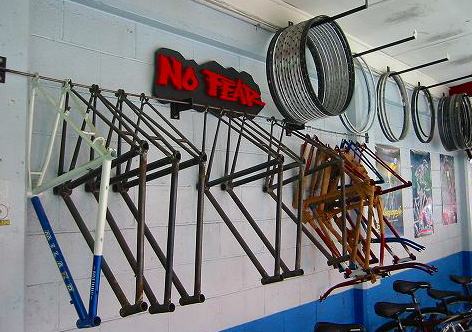 が吊るしてある。奥に進むとスーパーレコードで組まれたビチューのロードがあるし、修理中の古い