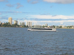 (スワン川を走る遊覧ボート) (川沿いにはサイクリングロードが完備)