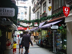 (中心街入口、飾りはクリスマスのまま?) (ロンドンコート、たくさんのみやげ物屋がありました)