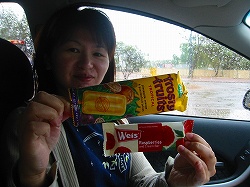 (ケルムスコットのスーパー「ウールワーズ」で今晩の食材とお土産を買い込む)