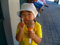(次女はアイスクリームを食べて満足) (長女はインド洋の海岸で砂遊び)