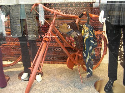 洋服屋のディスプレイでした。しかも、茶色一色に塗りなおされて置いてありました。自転車の価値
