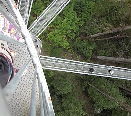 樹冠(木々のてっぺん付近)を見て回れるようになっています。相変わらずの高所恐怖症の自分は