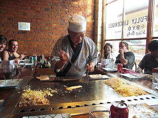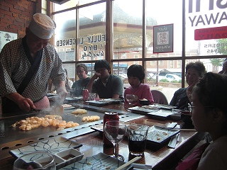 (東京鉄板焼きは、自分達以外は地元の方々で大盛況)