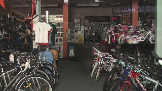 (散策で見つけた自転車屋 営業は1月3日から) (ガラス越しに店内を撮影)