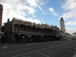 出発前、バララット旧市街を家族で散策。正月の朝とあって人通りはありません。店舗は映画館を