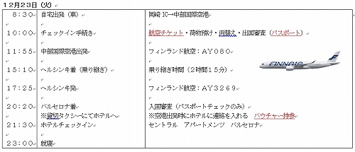 中部国際空港を旅立ち、北欧のヘルシンキでEUの入国審査&乗り継ぎ、予定通り20:20にバルセロナ空港