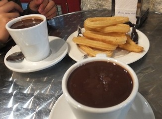 広場脇にあったカフェで休憩。名物のホットチョコレートいただく、チュロスにつけて食べるのだが、そのまま飲むと
