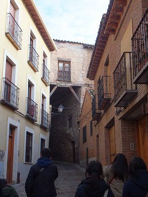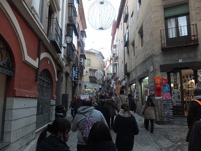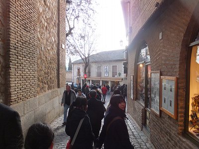 (トレドの旧市街地をツアーガイドの先導で歩く)