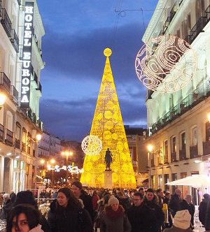 (ツリーのイルミネーション、多くの地元客及び観光客でごったがえす) (スペイン最後の夕食)