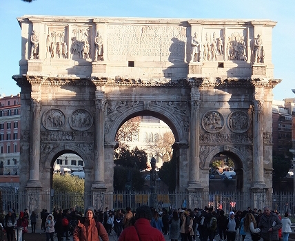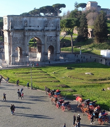 (コロッセオ前にあるコンスタンティヌスの凱旋門) (コロッセオから凱旋門を望む)