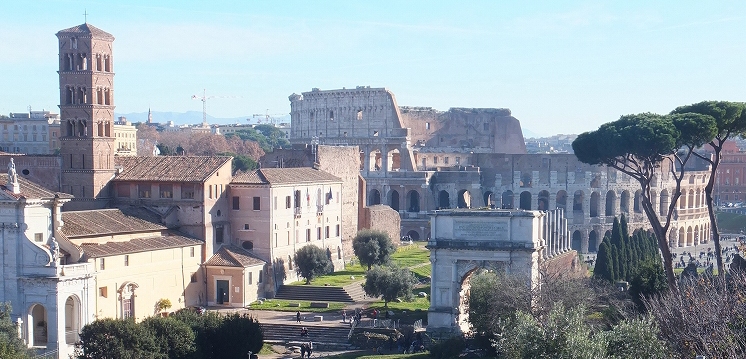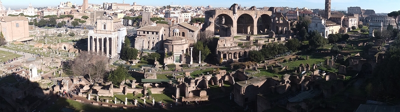 次はローマ時代国家の政治・経済の中心地「フォロ・ロマーノ」を散策。広い敷地にローマ遺跡がぎっしりと並び、