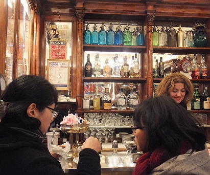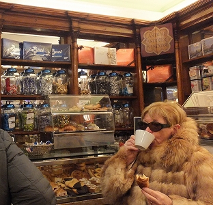 気軽に歩き回りますが、外気温は0℃近い。あまりにも寒いので立ち飲みカフェに入って地元の人と一緒に暖かい