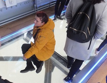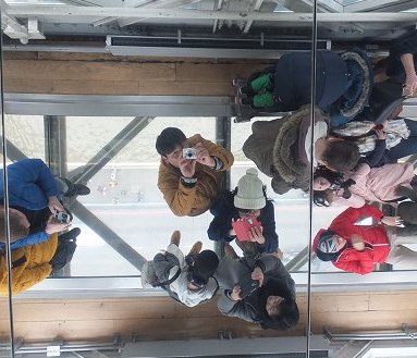 (ロンドンタワーブリッジの上部(歩行通用路)、一部シースルーになっっています)