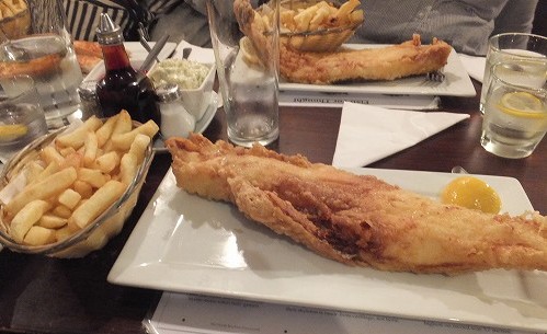 とても食べきれず、魚は半分ぐらい残し、チップスは持ち帰って翌日の朝食としました。