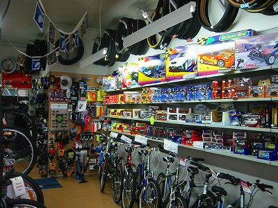 車屋を覗きましたが、地域によっては下の写真のように自転車と模型の両方をおいて商売