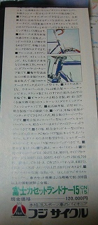 てみたら、1975年12月号に広告がありました。フジサイクル「カセットランドナー15」の