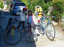 乗せて長女と2台で市内をポタ。10km近くを走ったらコンビニで定年退職した元上司に