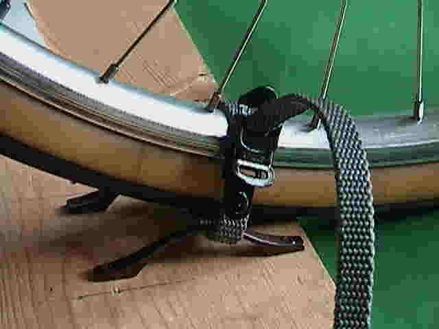 (ノブとストラップで後輪を固定) (滑り止めシートを貼り、運転中の揺れをストップ)