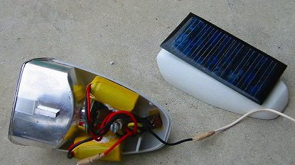 ちにあった防災用ソーラーライトを活用してヘッドライトに移植してみました。