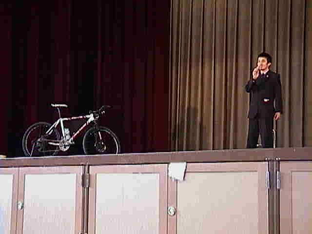 雷太選手が出場報告をしに母校を訪問した。たまたま自分の母校であるので報告会を覗かせて