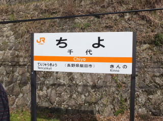 | 天竜峡の次の駅が千代駅。 小さな待合があるだけの駅。駅名が千代だけに、駅名票にさわると、長寿に恵まれるという噂があるとか。 秘境駅ランキングは34位。 |