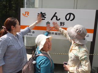千代駅から一駅で金野駅に着く。ここもまた、金野という駅名から、金運に恵まれるという噂もあり、駅名票に触れたとkろおを写真におさめる人が多かった。秘境駅ランキングは10位。 ホームから山側を見上げると大きな岩が見えるとのことで見てみたが、「ああ」といったところだった。 |