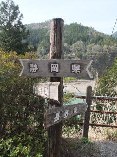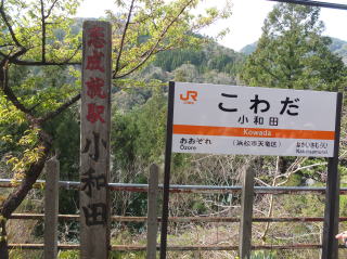 | 中井侍駅の次は小和田駅。「おわだ」ならぬ「こわだ」だが、漢字書きでは皇太子妃の旧姓と同じになるので、皇太子のご成婚のときには、この駅のすぐ近くで結婚式を挙げる人がいたり、臨時列車が出るほどの盛況ぶりだったとか。 この駅のホームには、愛知・長野・静岡の三県の県境もある。 |