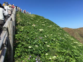 | 木道の両側には、北海道ならではの花が数多く見られた。 これまで、自然に咲く花をこんなに味わいながら見たことがあっただろうか。 それにしても、この先には、先ほどの景色に勝るものがるのだろうか。 |