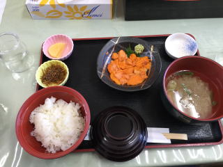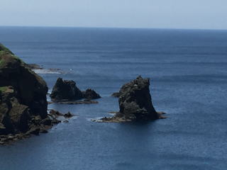 猫台・桃台からの海の眺めも素敵だった。何もない。でも、その色とうねり。それは、自然の作り出す芸術だ。 昼食は、香深港近くとお食事処かふか。ホッケ一匹がどんと出てくるホッケ定食だった。しっかり脂がのっていた。 |