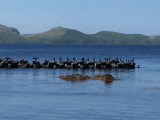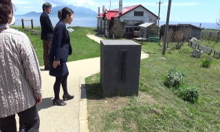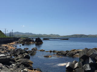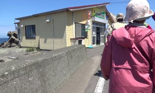 昼食は、うに丼。むいたウニが準備されていて、それをご飯の載せていただくようになっていた。甘みのしっかりあるウニだった。 食事の時間は、優に一時間は確保されていたが、どんぶりものを食べるのに時間はかからない。 余った時間に、近くの浜に出た。 金田岬は、標柱があるだけ。居るかもしれないと言われたアシカもいなかった。そこで、反対側のワンの方に行くことにした。 |