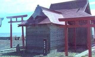 | 礼文島を観光するバスのガイドさんも、立て板に水といった感じ。礼文島を知り尽くした人だった。 香深港を出て間もなく、海に向かって立つ神社があった。見内神社というのだそうな。海の方を向いているので、「見ない」神社なのかな。 |