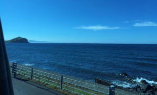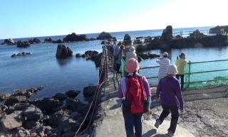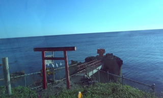 御崎公園を出て西海岸を進むと、「北のいつくしま弁天宮」が、海にせり出すように祀られていた。いわれのあるところのようだ。 さらにその先には、「寝熊の岩」と「人面岩」があったのだが、まるっきり逆光で、うまくとらえられなかった。 |
