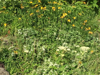 昆布屋さんのわきにも、北海道ならではの花がきれいに咲いていた。 |