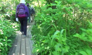 人工池が観光地になるには、それなりの理由がある。 水鏡に逆さ富士が映ることはなかったが、利尻山を背にした姫沼は、見応え十分だった。 池の手前で毛づくろいしていたシロサギは、我々が近づいても。落ち着いて毛づくろいをしていた。 この時のバスガイドさんも、花には詳しいようだったが、木道に1列に並んでいると、説明も聞き取れないのだった。去年の台風で倒れた大きなトドマツの株が印象的だった。 |