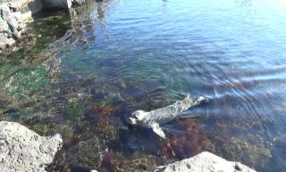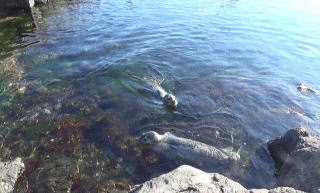 | 生け簀に放し飼いになっているごまふあざらしも、けっこう愛嬌があった。(餌をもらえれば敏感に反応するといったところではあるが) |