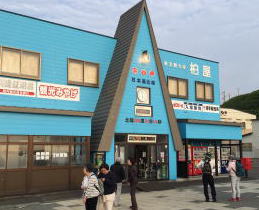 林蔵像の反対側には、宗谷岬の歌碑があった。ボタンを押すと、「流氷溶けて…」と、懐かしい歌が流れてくるのだった。 駐車場にはドライブインがあって、正面には、宗谷岬 日本最北端 北緯45度31分14秒 そして、気温14.7℃の表示もあった。 |