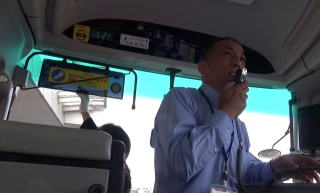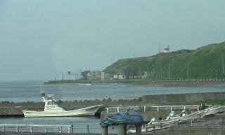 | バスに乗ると、はじめにドライバーさんの挨拶があり、続いて今回の添乗員さんの挨拶が。札幌から5時間以上かけて稚内まで来たのだとか。 続いてガイドさん。話はこなれていて、飽きさせない話し方だった。この日の観光は、宗谷岬を訪ねるのがすべてだった。 |
