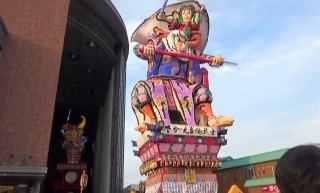 立佞武多に交じって、青森のねぶたにも似たものもあった。 ここでは、曳き手、囃子方や跳人の生き生きとしたさまを間近で見ることができ、ねぶたはこうでなくっちゃと思った。 |