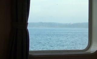 本を読んでいたので、時間の経つのも忘れていたが、気づくと外に島が見えていた。壱岐の島は案外フラットなのだ。 船が着岸するときは、電車がホームに入るのとは違って不安定さがあるところが興味をそそられる。 |