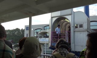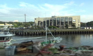 やがて橋がかけられ、大勢の人が動き出す。 壱岐での宿は、料理などの希望に沿うようになっていて、3つの宿に分かれるようになっていた。 我々の宿は、5人だけだったので、ワゴン車でのお迎えだった。とはいえ、宿は港の入り江を挟んで、すぐ向かいにあった。 |