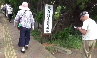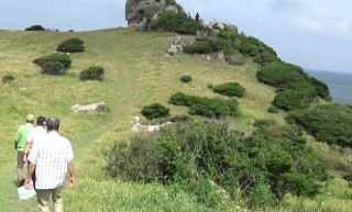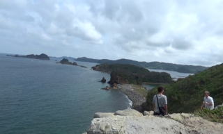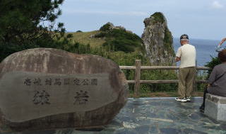 | まずは、岳の辻の展望台へ。ここからは、昨夜止まった郷ノ浦のホテルもよく見えたし、この日見学する場所の大方は見えた。 島の外観を知るにはもってこいの場所だった。 |