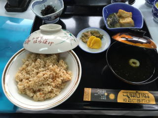 地蔵さんの安置場所は、二度、三度と変わったそうだ。地蔵さんの近くまで橋が突き出ている。 地蔵さんのすぐ近くに、海女さんが営む食堂はらほげがあり、そこでウニの炊き込みご飯を食べた。 |