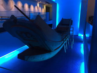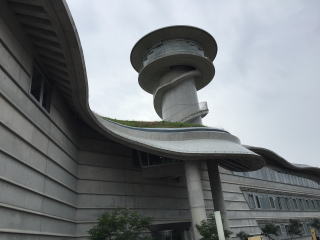 | 建築家黒川紀章氏の設計によるもので、曲線を取り入れたしゃれた建物。一支国とかいて、「いきこく」と読む。壱岐の歴史について、分かりやすく展示してる。 はじめに、ホールのようなところで、大型スクリーンを使って、原の辻遺跡など、一支の国の歴史などが紹介された。スライドが終わると局面スクリーンが下がり、その向こう側に、つい先ほどまでスライドで紹介されていた原の辻遺跡の実物が見晴らせるのだった。 |