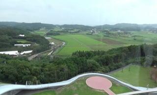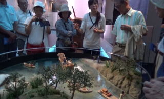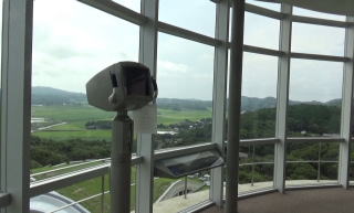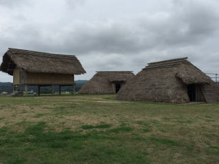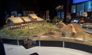 展示物は、途中まで写真撮影が禁止されていたが、ジオラマなどは撮影OK 。 「今日は、人面席の実物が展示されていますよ」と学芸員の方が紹介してくれた。 いろいろな仕掛けがしてあり、子どもにも楽しい博物館だ。 上の階からは、原の辻遺跡一帯が見晴らせた。 |
