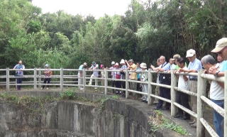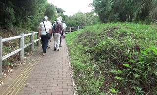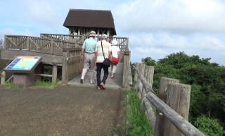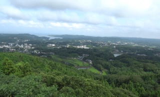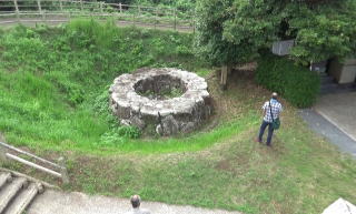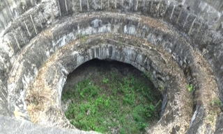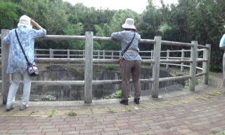 かつての砲台は、当時重要な軍事基地で、道路の途中に一の門、二の門と、一般人をチェックするところがあったそうだ。 坂を上っていくと、手すりで囲まれたところがあった。丸い大きな穴があいている。砲台のベースは下の方に見える。今は。崩れる恐れがあり、下に入ることはできないとか。一度も実践で使われなかった、東洋一の砲台跡。 |