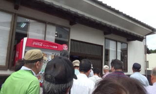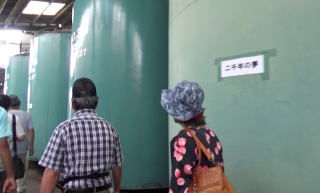 | 壱岐には、焼酎を醸造している蔵が7つある。そのうちの一つ、壱岐の蔵酒造の工場見学をした。福岡の店で飲んだ「壱岐っ娘」も作っている。 楽しみは試飲。どの製品も試飲でき、いいものを飲むと欲しくなり、つい財布のひもが緩む。それが、試飲のねらいなのだろう。 |