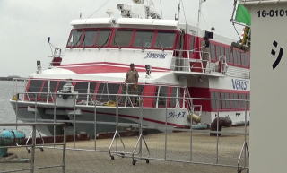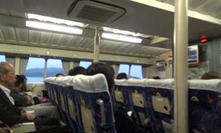 壱岐の名物は何でもそろうという「あまごころ壱場」に立ち寄って、郷ノ浦港から17:10のジェットフォイルに乗り込んだ。 船が到着する少し前から救急車が待機していて、我々が乗り込むときに、ストレッチャーで運ばれる人がいた。ジェットフォイルは、緊急搬送にも使われているのだ。 |