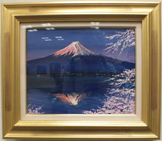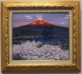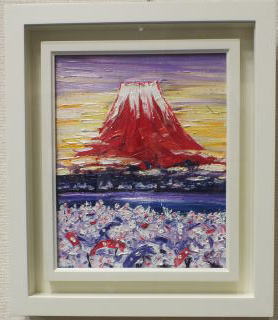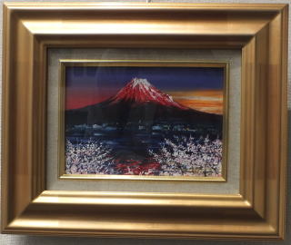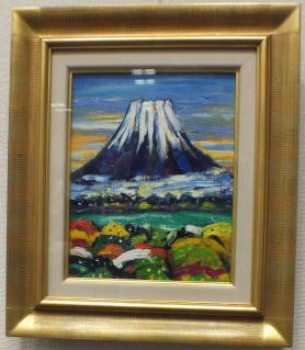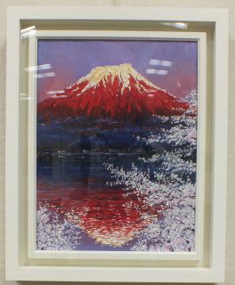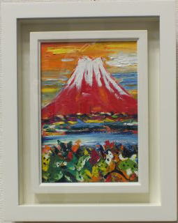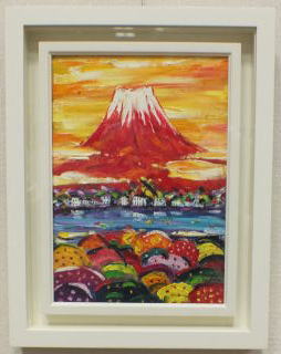 | 会場に入ると、河戸さんの展覧会ではこれまで見たことのない「富士」の作品群が目に入る。 写実的であったり、デフォルメされたものであったり、赤であったり青であったりと、挑戦的な作品だ。 いろいろなテイストが楽しめる。 |