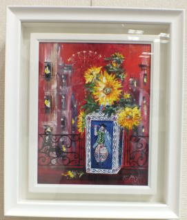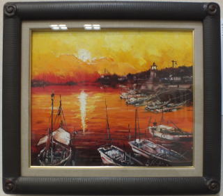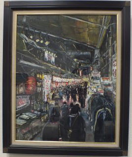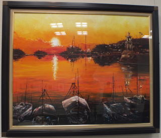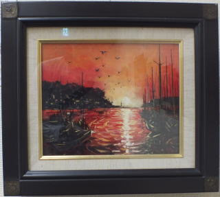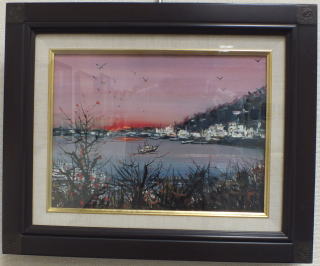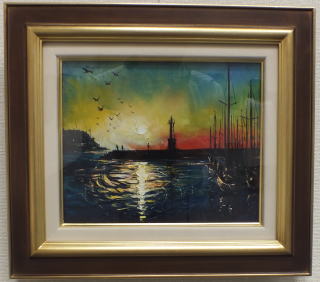 | 続いて、落陽、暮色、雨あげりといった、河戸 ワールドの作品が並ぶ。 赤みを帯びた光には、温もりがある。 夕焼け小やけで、日が暮れるからと 家路をせかされるようであり、 明日への希望を膨らませるようでもある。 、 |